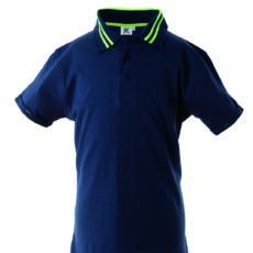 Polo Bambino in Jersey Cotone 100% 160g Righe in contrasto su Colletto Fluo