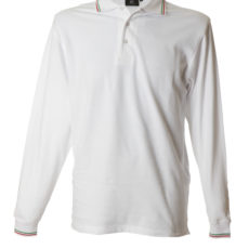 Polo Manica Lunga Piquè 100% Cotone 210g Polsini e Colletto con Tricolore