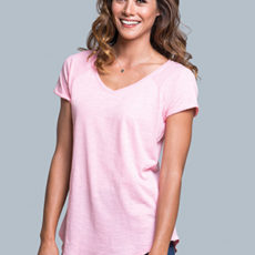 T-shirt Donna MODA FASHION Ampio collo V 100% Cotone Slub