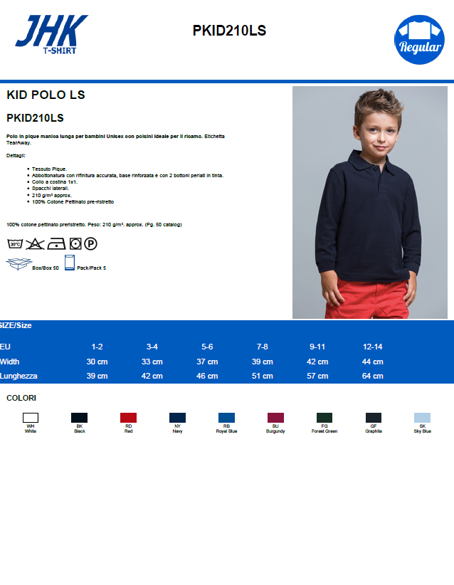Home / Abbigliamento / Polo / Bambino / JHK Polo Manica Lunga Bambino PKID210LS JHK Polo Manica Lunga Bambino PKID210LS Polo Manica Lunga Bambino Piquè 100% Cotone 210g Descrizione Informazioni aggiuntive Descrizione Informazioni aggiuntive Marca JHK Prodotti correlati Abbigliamento , T-shirt FRUIT T-shirt Valueweight 610360 T-shirt girocollo 100% cotone Abbigliamento , Canotte JHK Canotta Lady Ibiza TSULIBZ Canotta Donna Corta Abbigliamento , T-shirt FRUIT T-shirt Baseball 610260 T-shirt Bicolore 100% Cotone Abbigliamento , T-shirt FRUIT T-shirt valueweight Fitted 612000 T-shirt Girocollo Taglio adesrente SLIM FIT 100% Cotone
