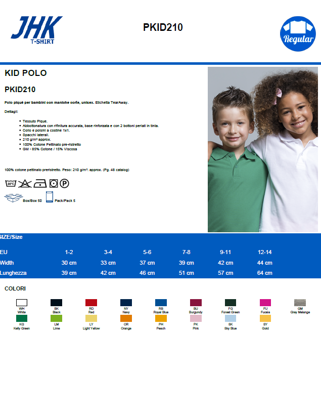 Home / Abbigliamento / Polo / Bambino / JHK Polo Piquè Bambino PKID210 JHK Polo Piquè Bambino PKID210 Polo Piquè Bambino 100% Cotone 210g Descrizione Informazioni aggiuntive Descrizione Informazioni aggiuntive Marca JHK Prodotti correlati Abbigliamento , Canotte JHK Canotta Paradise TSULPRDS Canotta Donna Taglio Vogatore 100% Cotone Abbigliamento , Donna JHK T-shirt Regular Lady V neck TSRLCMFP T-shirt Donna collo a V 100% Cotone Abbigliamento , T-shirt FRUIT T-shirt valueweight Fitted 612000 T-shirt Girocollo Taglio adesrente SLIM FIT 100% Cotone Abbigliamento , Donna JHK T-shirt Creta TSULCRT T-shirt Donna Ampia Scollatura 100% Cotone