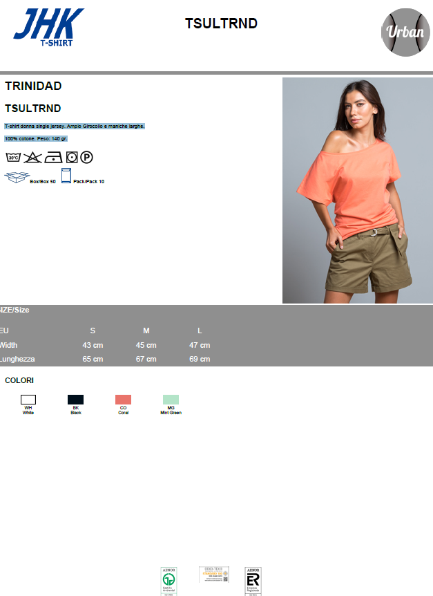 T-shirt donna single jersey. Ampio Girocollo e maniche larghe.