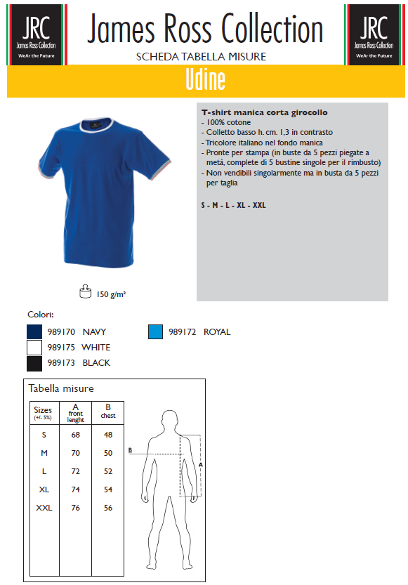 T-shirt 100% Cotone con Tricolore Bordo manica